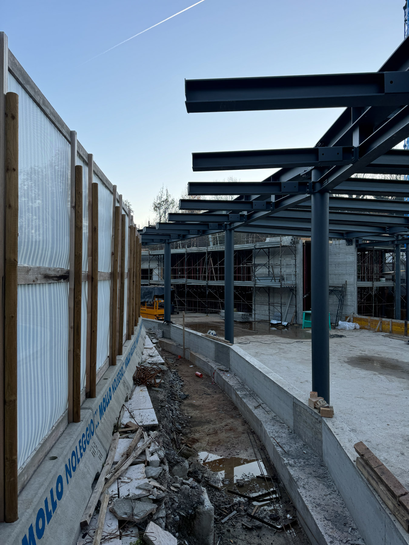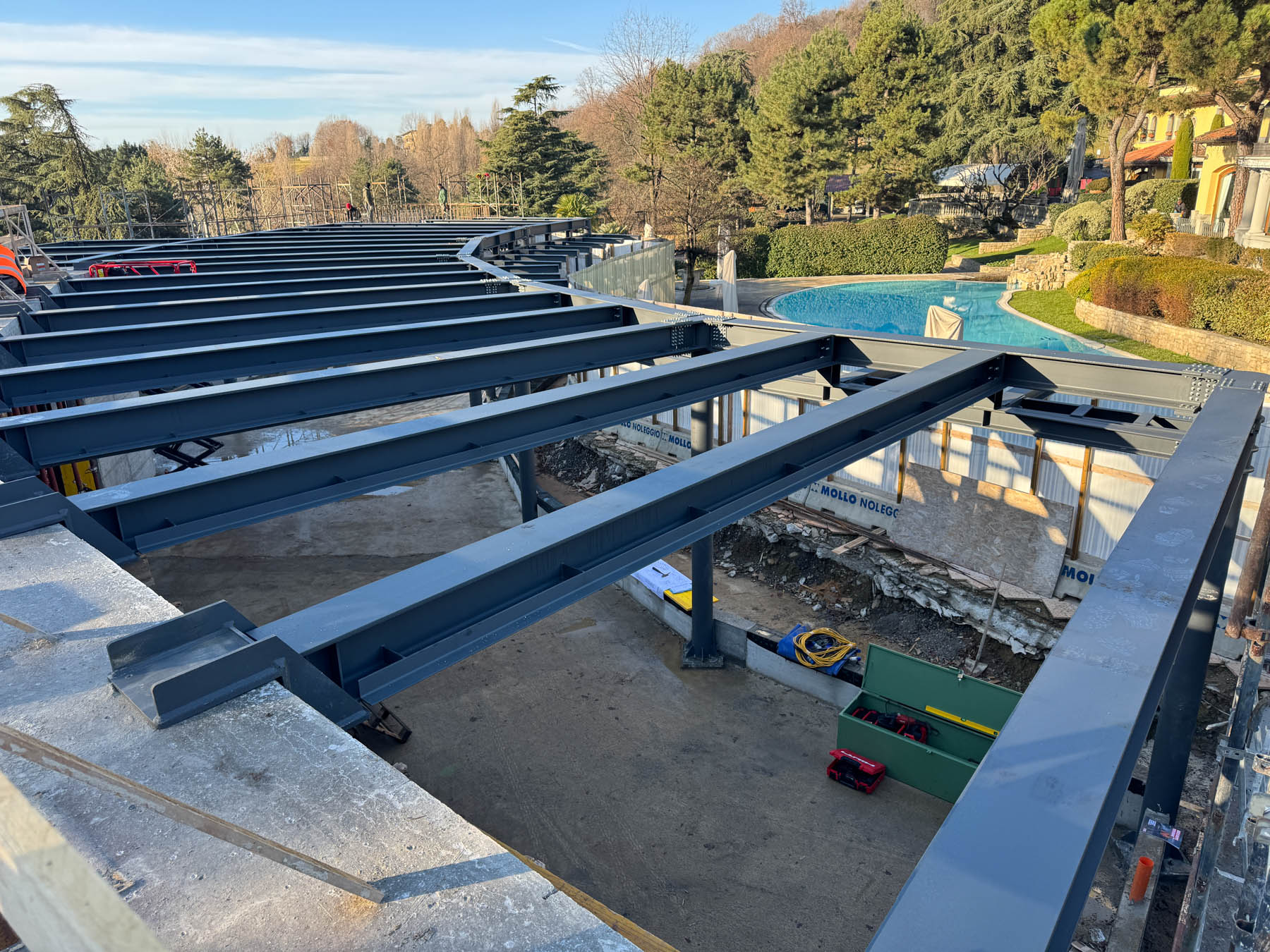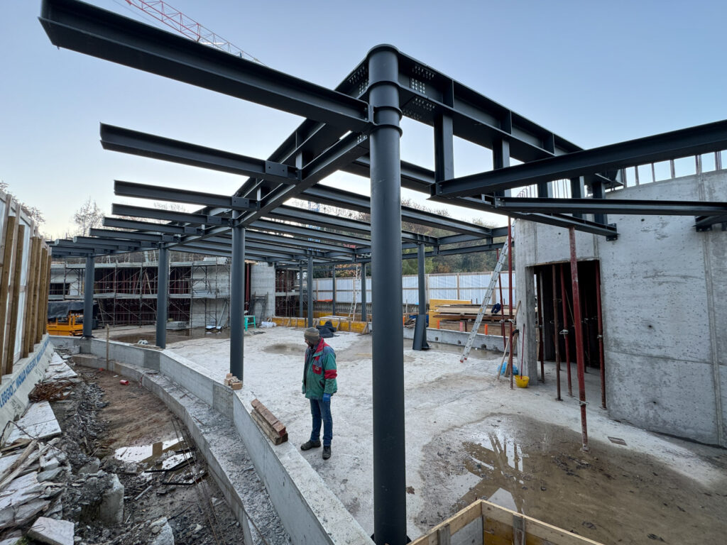Realizzazione di struttura in carpenteria metallica per ampliamento spazi coperti, completa di lamiere collaboranti di copertura e posa in opera.
