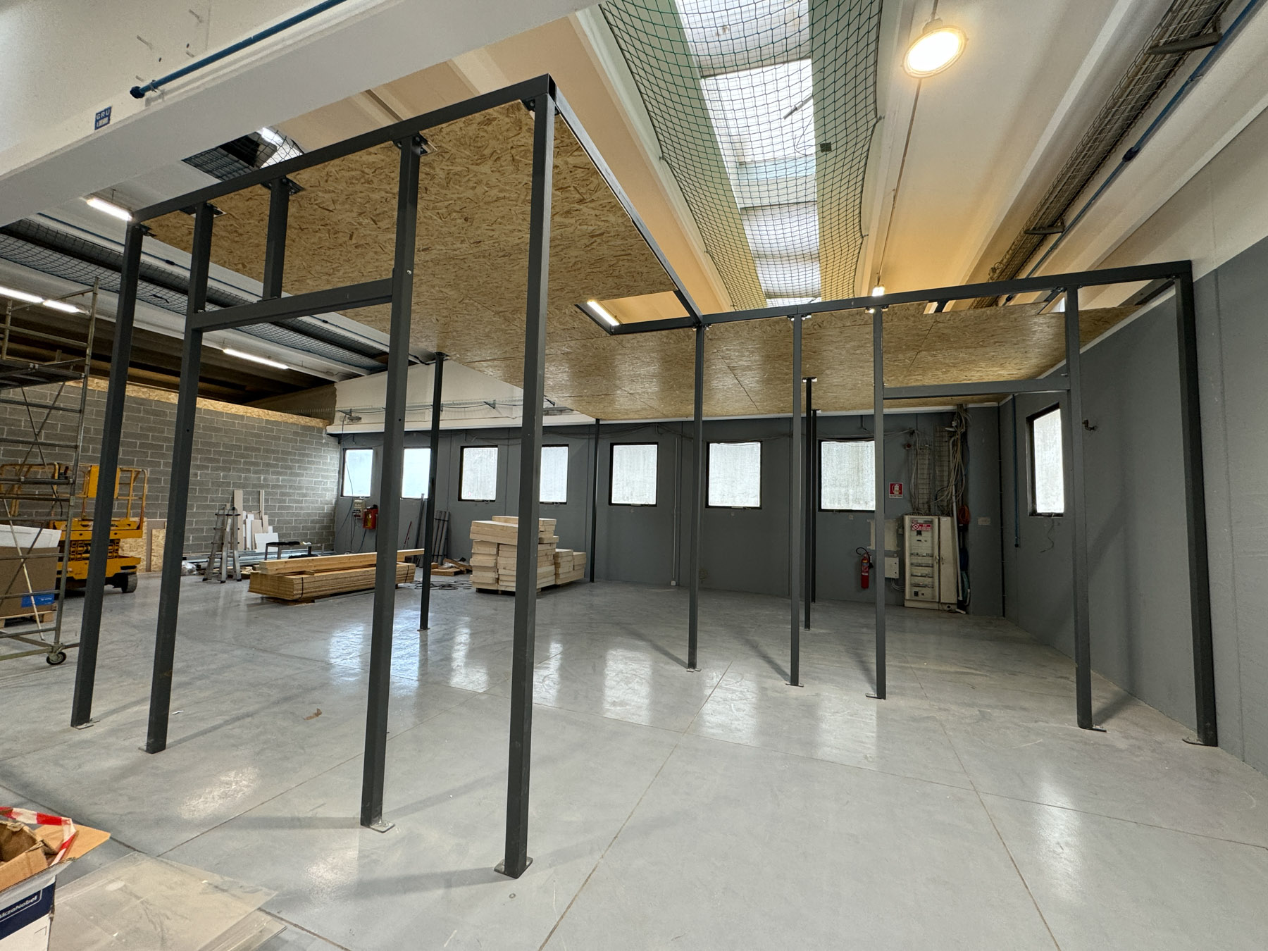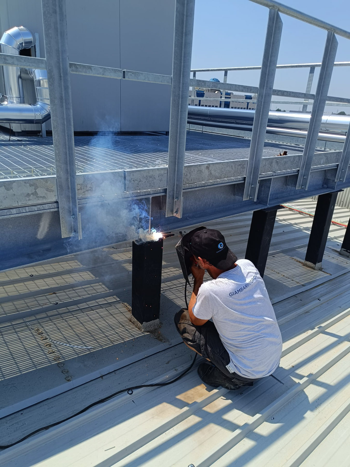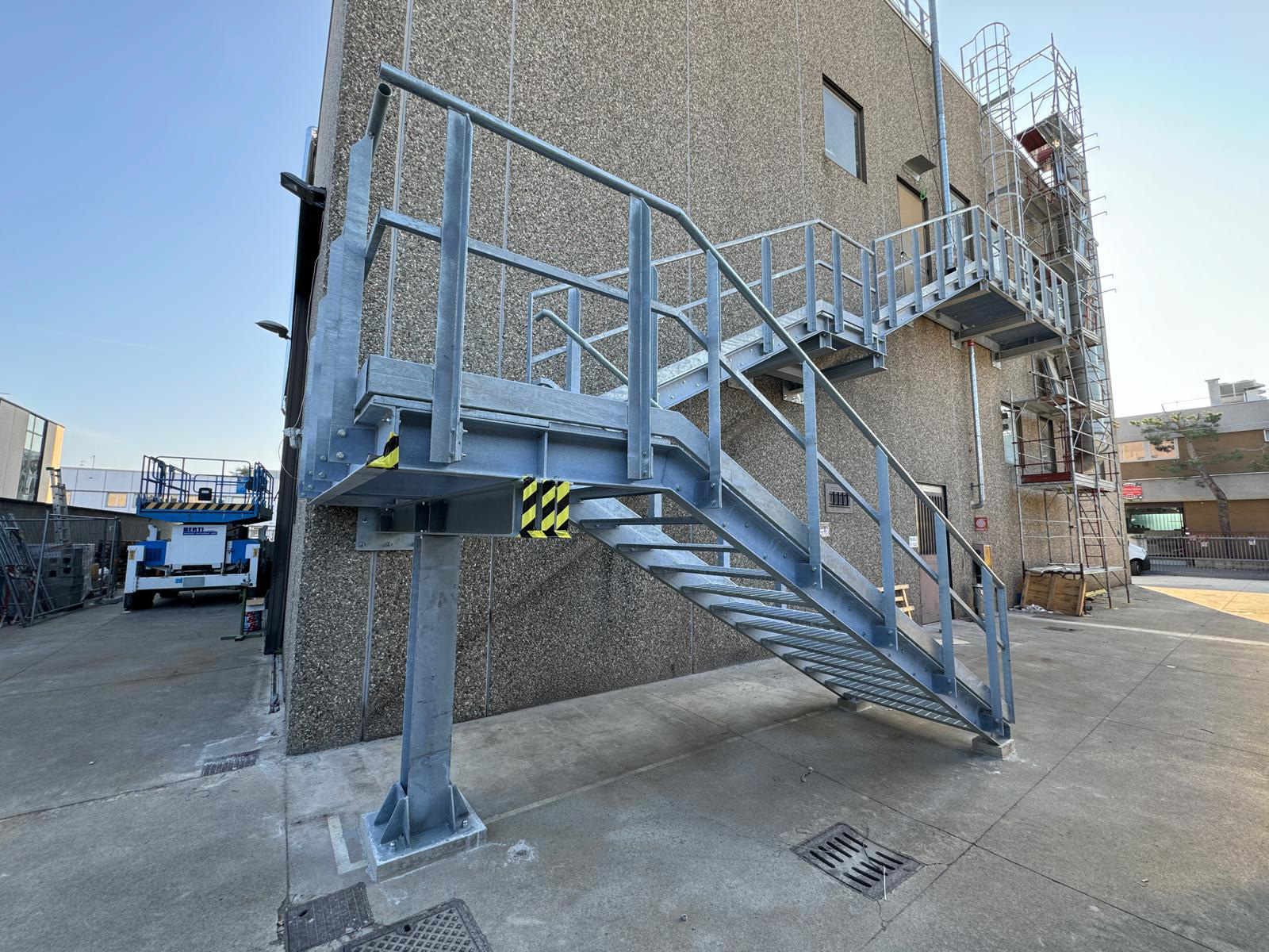 Carpenteria metallica per la formazione di strutture a completamento di precedenti opere che comprendono, scala di sicurezza, cabina elettrica, soppalco e nuovi uffici