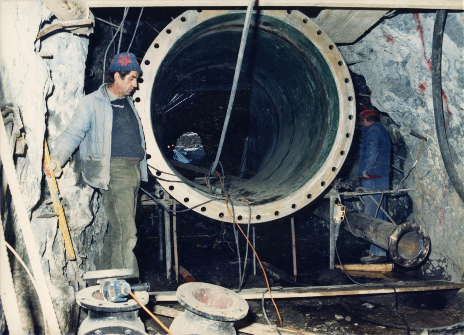 Realizzazione di scarico di fondo per Diga del Barbellino, saldato in opera, con ancoraggio alle rocce circostanti. Oltre a fornitura e posa in opera di lamiere per supporto guaine in sibelon.