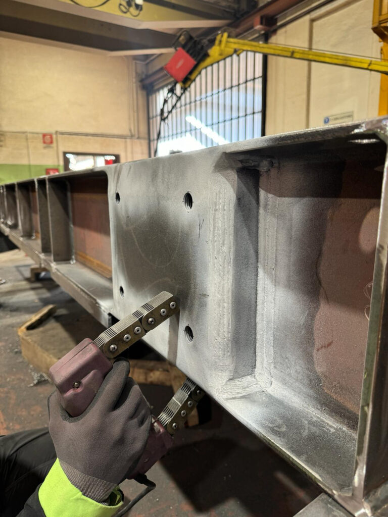 Carpenteria metallica, in acciaio S355J2, preparazione con raggiatura P3, per realizzazione n. 4 impianti compressori.
